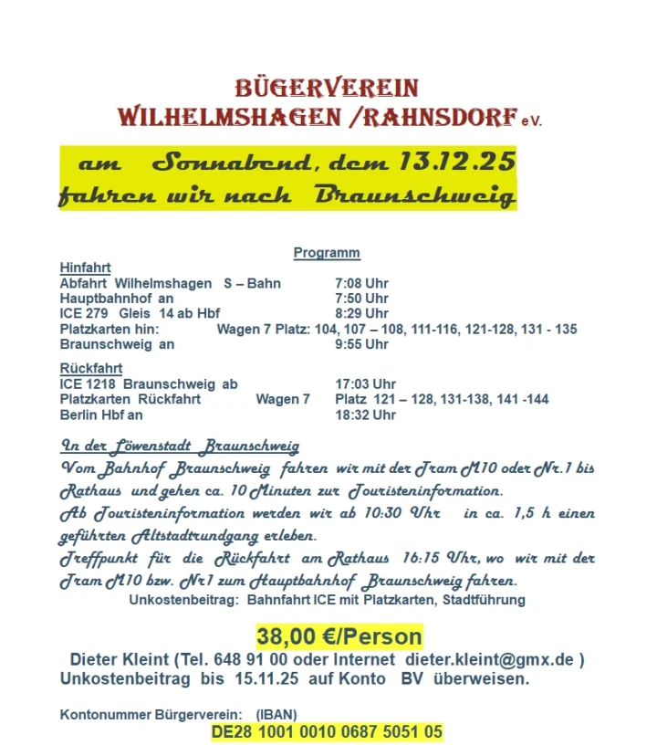 / Der Bürgerverein Wilhelmshagen-Rahnsdorf e.V. sendet allen Bürgern unserer Ortslagen Grüße und wünscht einen schönen 4. Advent.