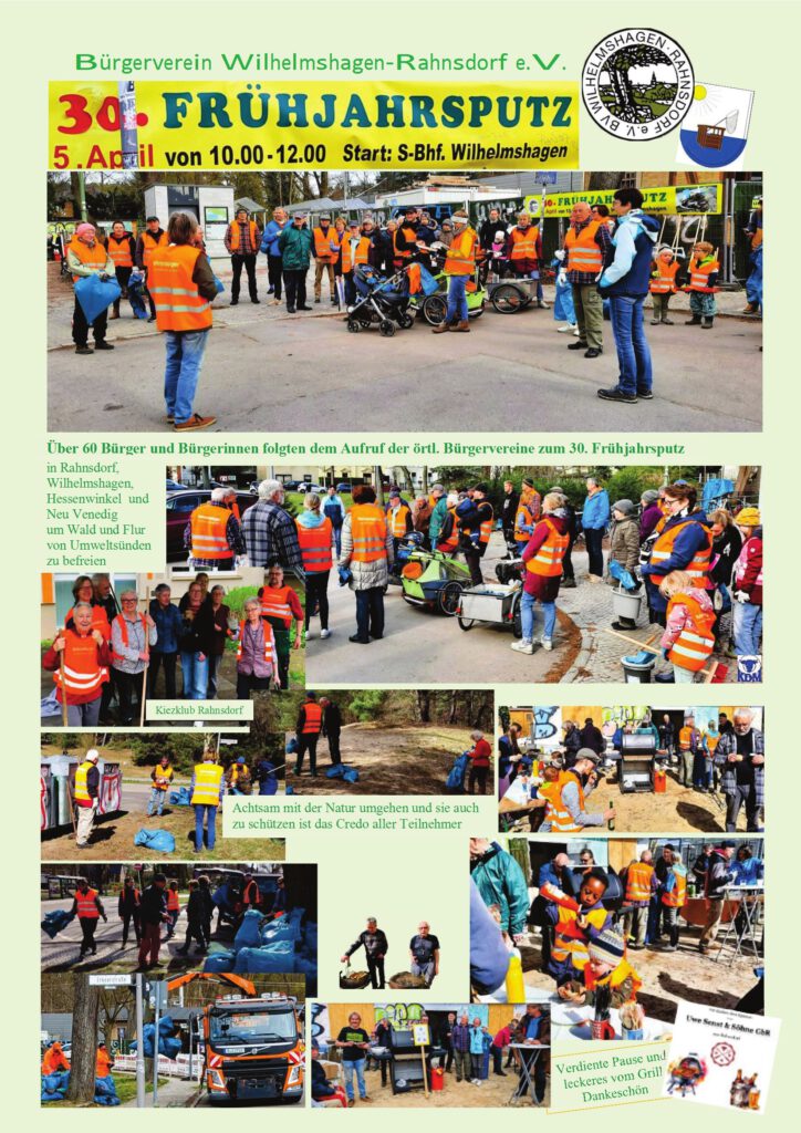 Der 30. Frühjahrsputz war ein voller Erfolg. Die Beteiligung der Bürger aus den Kiezen war besonders auserlesen. Es war eine Freude die Kinderschar in den roten Westen der BSR zu sehen. Vielleicht finden sie sich wieder in der folgenden Bildergalerie. Falls nicht, übergeben sie das fehlende Foto dem Bürgerverein. Nach und nach werden hier die vorhandenen Bilder eingefügt.